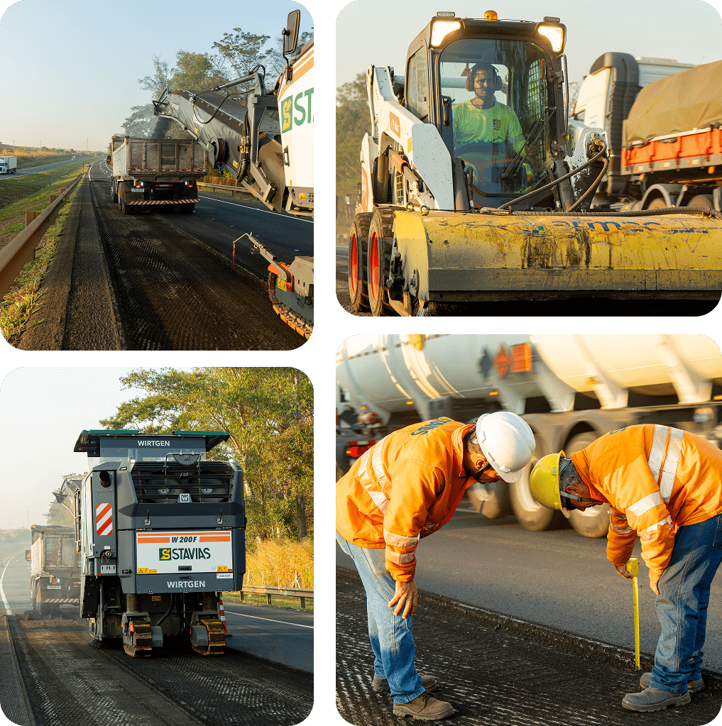 A Stavias executa obras de pavimentação com equipes altamente qualificadas e equipamentos de última geração. Na etapa final de aplicação, a tecnologia Mobamatic Big Sonic Ski assegura a uniformidade da superfície, resultando em pavimentos com desempenho superior e menor índice de irregularidade.